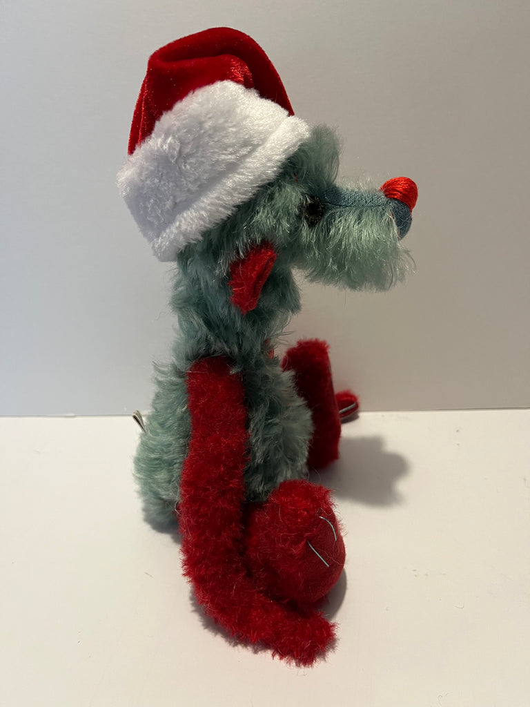 Buddy is a 5 way nut & bolt jointed Artist bear, this will help to pose the bear better as shown in the pictures. Made from a mixture of hand dyed mohair with a short pile mohair with ultra suede paw pads. Buddy has been stuffed with polyester filling and a small amount of steel shot to give added weight. The arms are partly filled with steel shot which makes them floppy to pose, the eyes are a lovely shiny black and gold sparkle colour and the nose is hand embroidered in a matching red perle thread. Buddy wears a removeable Christmas hat. A fun bear to make you smile :) Stands at approximately 12"/31cm tall to include hat.