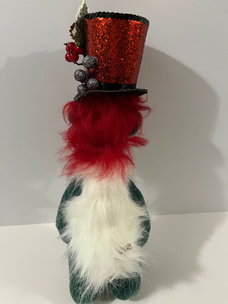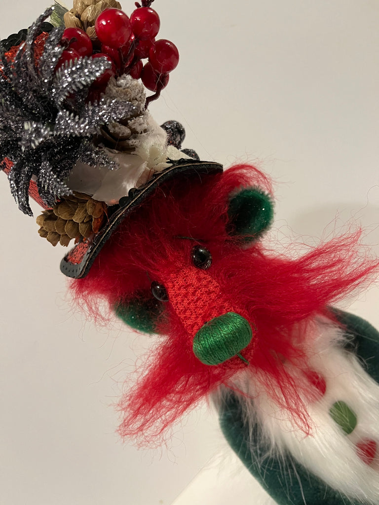 Noddy is a 5 way nut & bolt jointed Artist bear, this will help to pose the bear better as shown in the pictures. Made from a mixture of mohair, the green has been hand dyed and faux fur with sparkly felt paw pads. Noddy has been stuffed with polyester filling and a small amount of steel shot to give added weight. The arms are partly filled with steel shot which makes them floppy to pose, the eyes are a lovely shiny sparkly black/silver colour and the nose is hand embroidered in green thread. Noddy wears an attached decorated hat (not removable) and buttons sewn to the front of the body.  A fun bear to make you smile :) Stands at approximately 15"/38cm tall to include hat.
